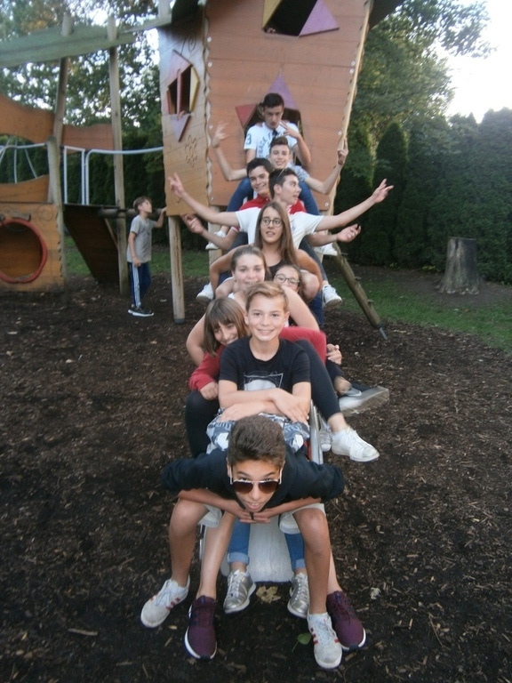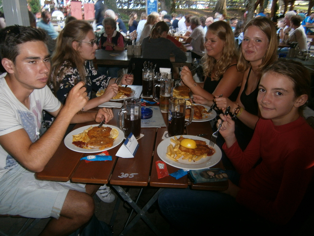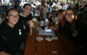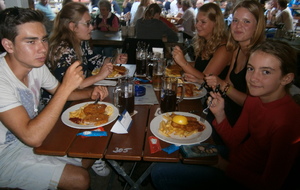 Ensuite nous sommes partis pour la visite de la brasserie Maxlrain. Là nous avons été guidés par son directeur commercial qui nous a ensuite emmenés vers nos tables. Nous avons eu droit à un repas de roi accompagnés d'un orchestre bavarois. Les enfants ont pu profiter du parc et des jeux dans un cadre fabuleux.